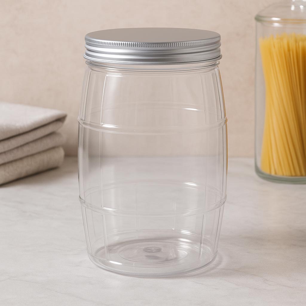 PET-dåse "Tønde" – stilfuld opbevaring i karakteristisk tøndeform
