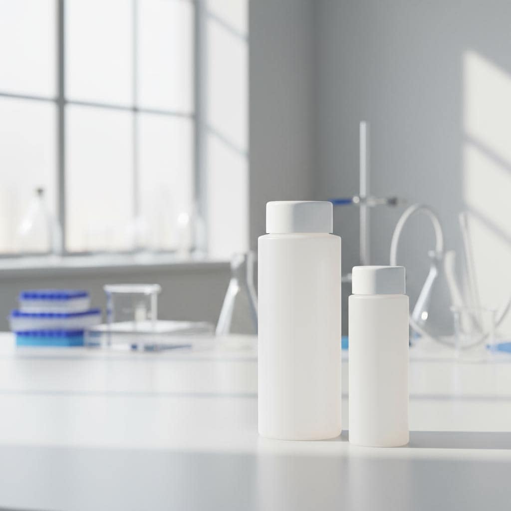 100 ml rund flaske, PE-plast, natur, åbning: skruelåg