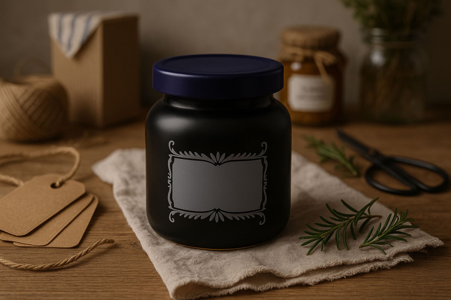 Flaskelandet 270 ml stentøjskrukke, motiv: etikettefelt, keramik, sort, åbning: pålægslåg