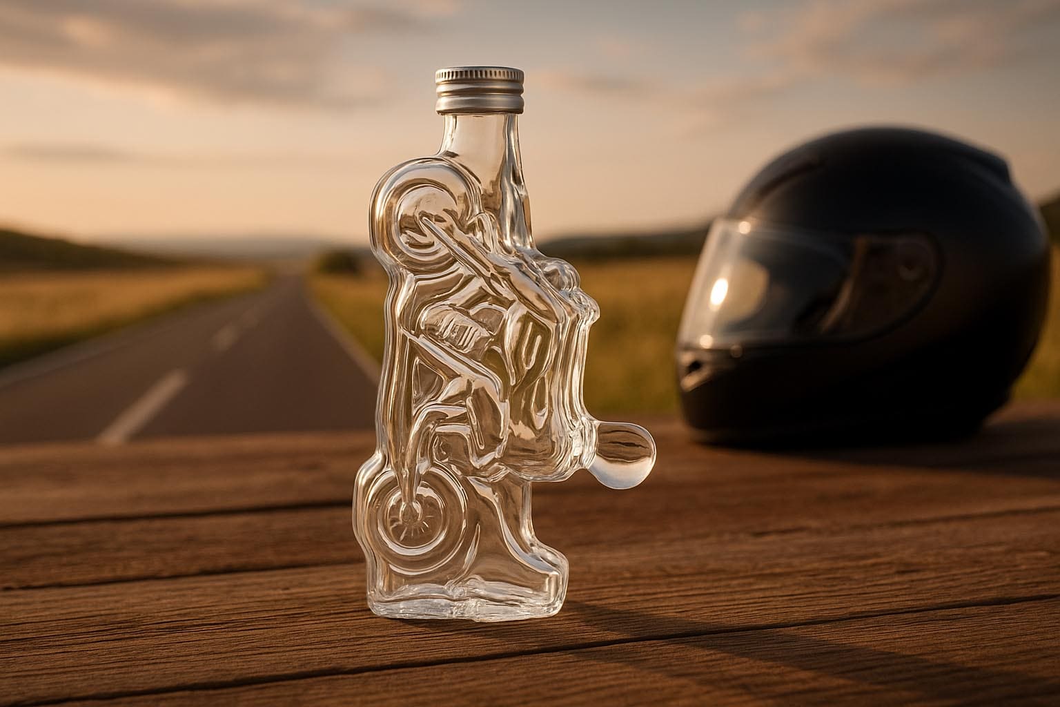 Motivflasken „Motorcykel“ er et usædvanligt blikfang, der forvandler frihedsfølelsen og fascinationen ved motorcykelkørsel til en stilfuld glasflaske. Dens detaljerede design gør den til det perfekte valg for alle, der elsker fart, eventyr og individualitet. Fremstillet af højkvalitets klart glas tilbyder den en elegant emballage til spiritus, brændevin, likører og andre særlige lækkerier. Den praktiske åbning i PP-28-format sikrer nem håndtering og en sikker forsegling. Uanset om det er som gave til motorcykelentusiaster eller som en original præsentationsflaske – „Motorcykel“-flasken kombinerer markant design med funktionel kvalitet.