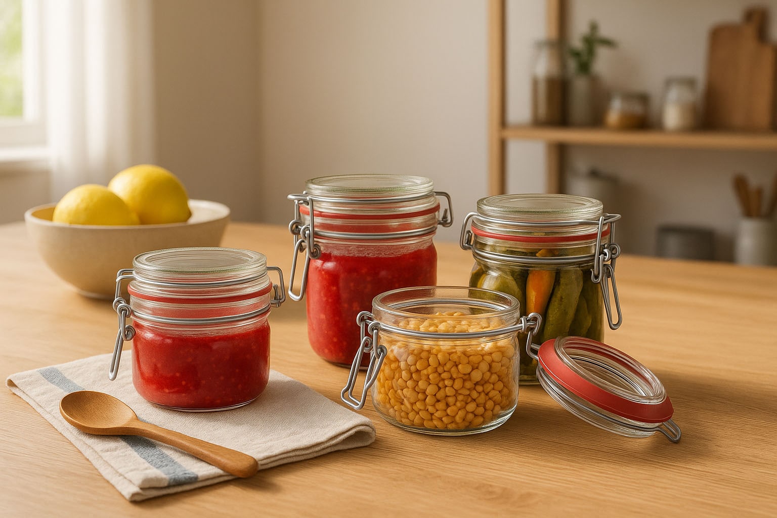 Patentglassene egner sig ideelt til indkogning og konservering af hjemmelavede specialiteter som marmelade, chutney eller syltede grøntsager. De tilbyder også en hygiejnisk og stilfuld løsning til opbevaring af tørre fødevarer som müsli, mel eller bælgfrugter.
