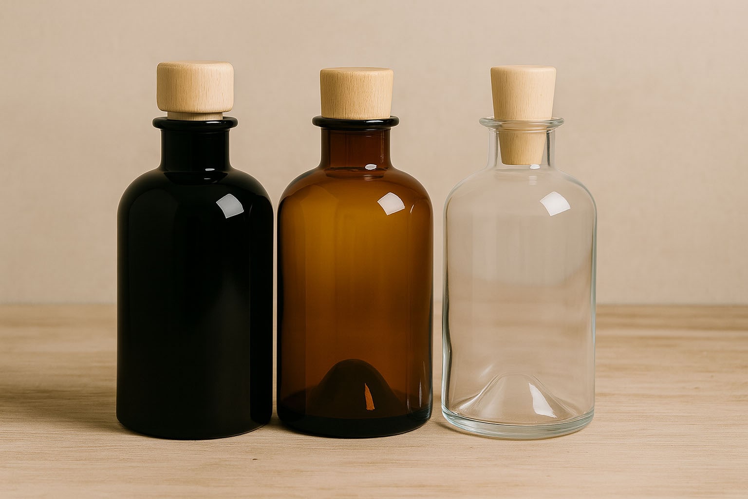 Apotekerflasker står for en perfekt kombination af tradition og funktionalitet. Deres karakteristiske design med runde skuldre og en solid form giver dem en tidløs æstetik, som harmonisk passer ind i forskellige anvendelsesområder. Normalt udstyret med en tallerkenmunding, tilbyder de en stilfuld og samtidig praktisk løsning til opbevaring af ædle væsker. Tilgængelige i volumenstørrelser fra 200 til 500 ml samt i glasfarverne sort, brun og klar, muliggør de en individuel tilpasning til forskellige produktkrav. Uanset om det er til likører, spiritus, tinkturer eller eliksirer – disse flasker understreger indholdets høje kvalitet og sikrer en tiltalende præsentation.