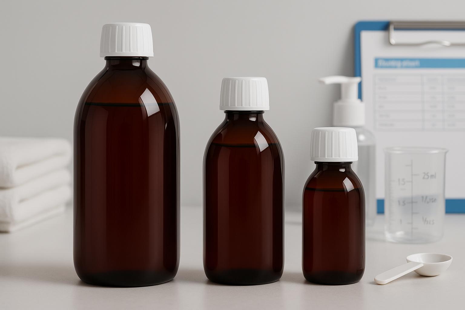 PET-medicinflasken kombinerer høj funktionalitet med praktisk håndtering og er den ideelle emballageløsning til farmaceutiske og kosmetiske produkter. Fremstillet af højkvalitets PET (polyethylenterephthalat), imponerer den med sin lave vægt, høje brudstyrke og genanvendelighed, hvilket gør den til et bæredygtigt og miljøvenligt alternativ til traditionelle glasflasker. Fås i farven brun, som giver effektiv beskyttelse mod lys og pålideligt beskytter følsomt indhold mod ydre påvirkninger. Med en kapacitet på 60 til 1000 ml og en standardiseret PP-28-munding sikrer PET-medicinflasken en sikker forsegling – passende låg fås i vores sortiment. Denne fødevaregodkendte emballageløsning forener sikkerhed, komfort og alsidighed.