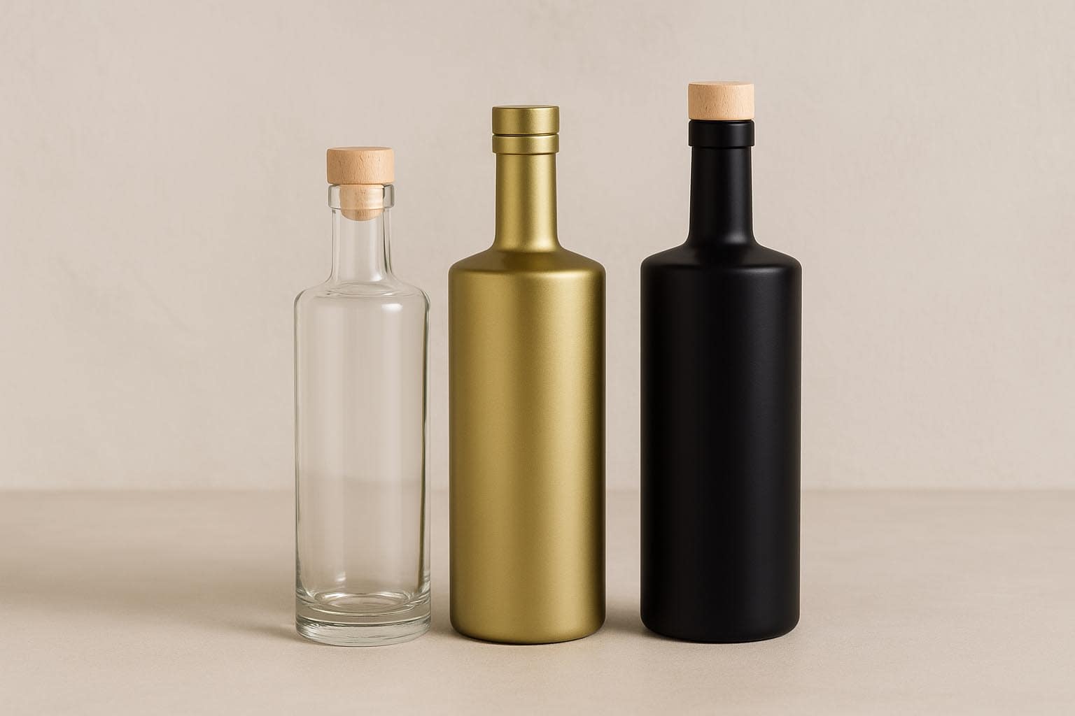 Serien "Centurio" forener en slank, raffineret silhuet med tidløs æstetik og tilbyder en stilfuld emballageløsning til kvalitets spiritus, fine olier eller eksklusive eddiker. Som en høj, smal cylinderflaske med flade skuldre og forlænget hals understreger den indholdets elegance og sikrer en markant præsentation. Fås i farverne klar, guld og sort, tilpasser "Centurio" sig harmonisk til forskellige designkoncepter. Den klassiske korkprop muliggør en sikker forsegling og kan kombineres med passende lukninger fra vores sortiment. Med sin slanke form og høje kvalitet er "Centurio" det ideelle valg for mærker, der satser på eksklusivitet og moderne elegance.