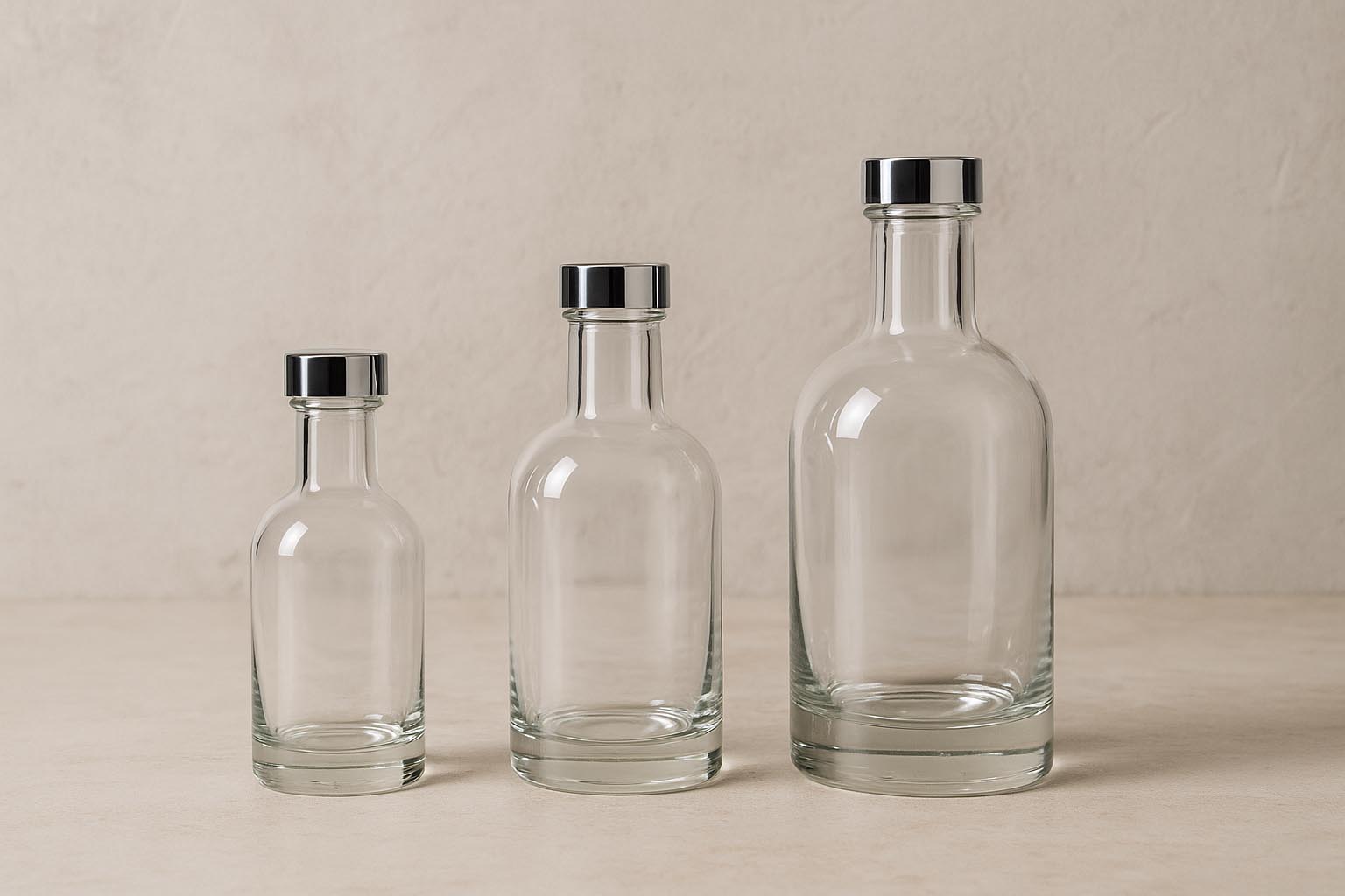 Serien First Class forener førsteklasses håndværk med tidløs elegance og tilbyder et eksklusivt udvalg af klare glasflasker, der er udviklet til de højeste krav. Fremstillet i Italien, repræsenterer disse ædle rundskuldrede flasker fejlfri kvalitet og et design, der perfekt kombinerer raffinement og funktionalitet. Med en kapacitet på 250 til 700 ml og valgfrit en korkprop eller GPI 28 / GPI 33 er First Class det ideelle valg til premium likører, ædle brændevine og kvalitetsgin. De præcist fremstillede glasflasker understreger eksklusiviteten af hver kreation og sætter nye standarder i verdenen af eksklusive spiritusemballager.
