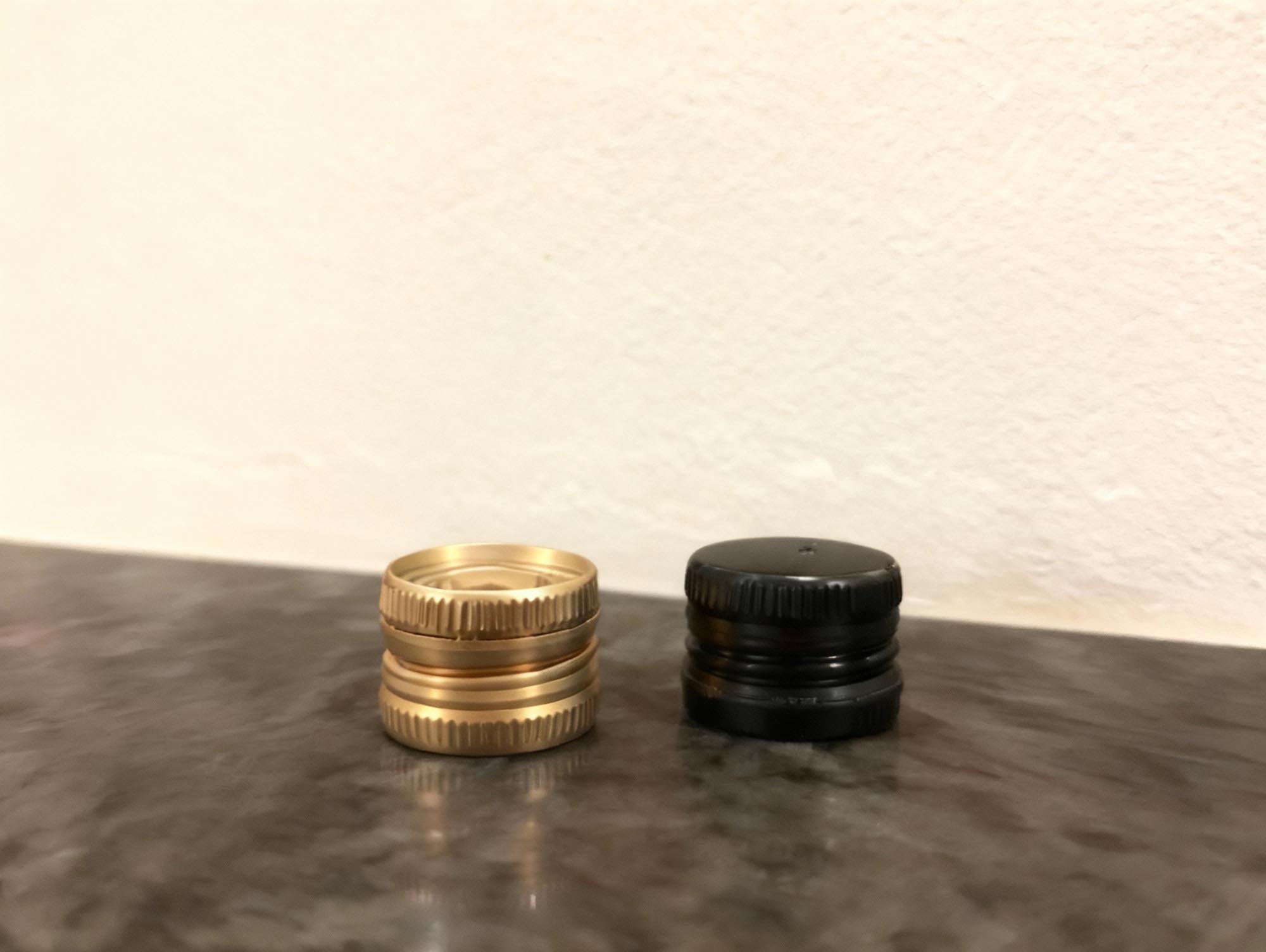 Skruelågene med hældetud fra Flaschenland tilbyder en pålidelig og praktisk måde at lukke flasker med PP-31,5-munding sikkert og tømme dem kontrolleret. Kombinationen af metal og plast sikrer stabilitet og et diskret udseende i guld eller sort. Den integrerede hældetud muliggør en ren og doseret hældning uden dryp.